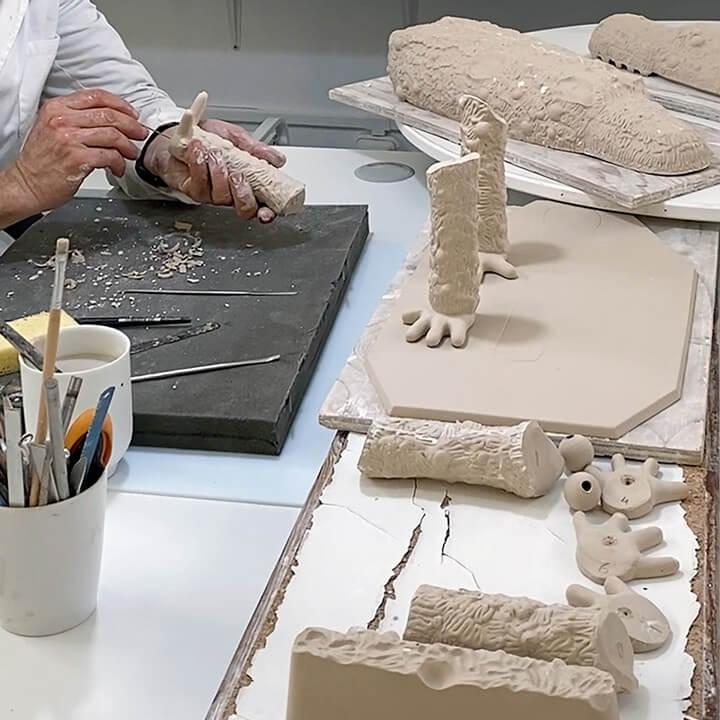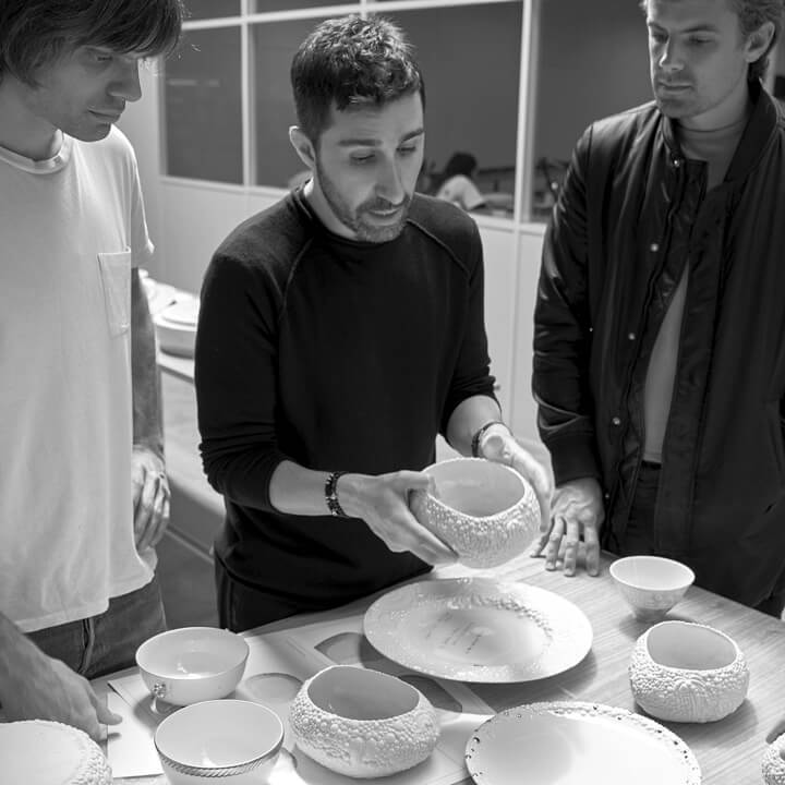 The design team at L’OBJET worked on a series of shapes for scale and function, which the brothers used as canvases for their creative fantasies. 3D-printing enabled the designs to transport from the Brothers’ studio in LA to the L’OBJET porcelain atelier in Portugal. Together with Elad, the brothers flew to Portugal to manually work and sculpt each prototype by hand before molds were made ready for porcelain pouring. Beyond mere quality control, they needed to feel just right — something that had to be evaluated with eyes and fingers.