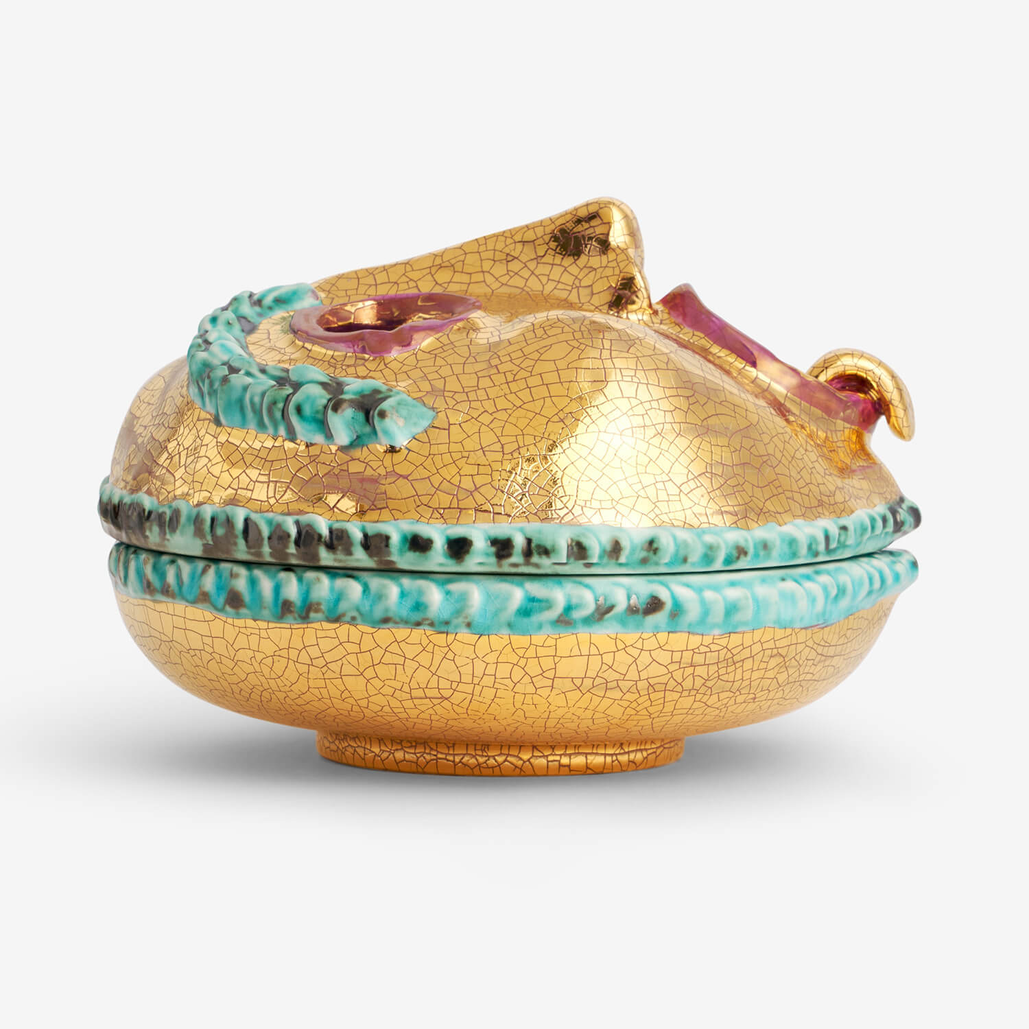 Meticulously crafted in stoneware and adorned with our signature 24K gold, this whimsical yet refined piece is an ode to bold creativyt.