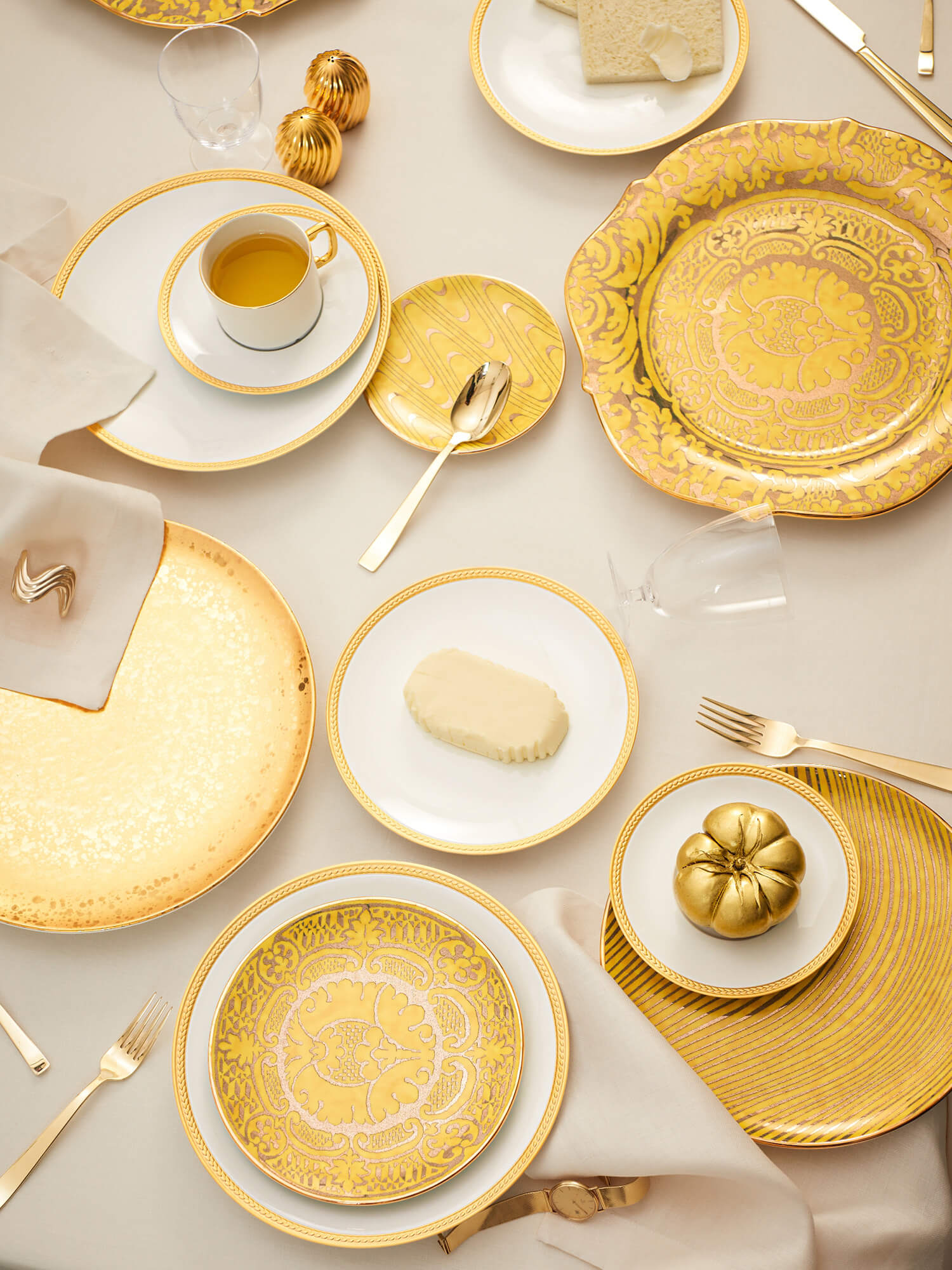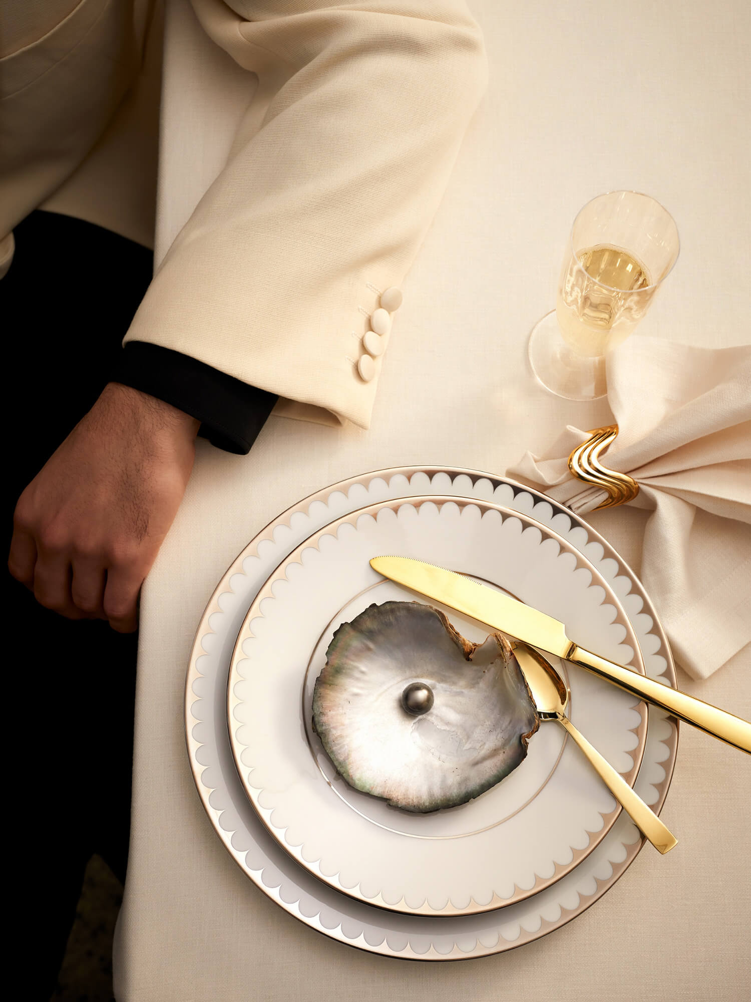 Bathed in tones of white, gold, champagne, and platinum, the holiday table becomes a canvas of light and connection. Here, every element finds its place—porcelain, glassware, serveware, and cutlery weaving together in harmony. More than objects, they are gestures of elegance, designed to transform dining into ritual, and gathering into art.