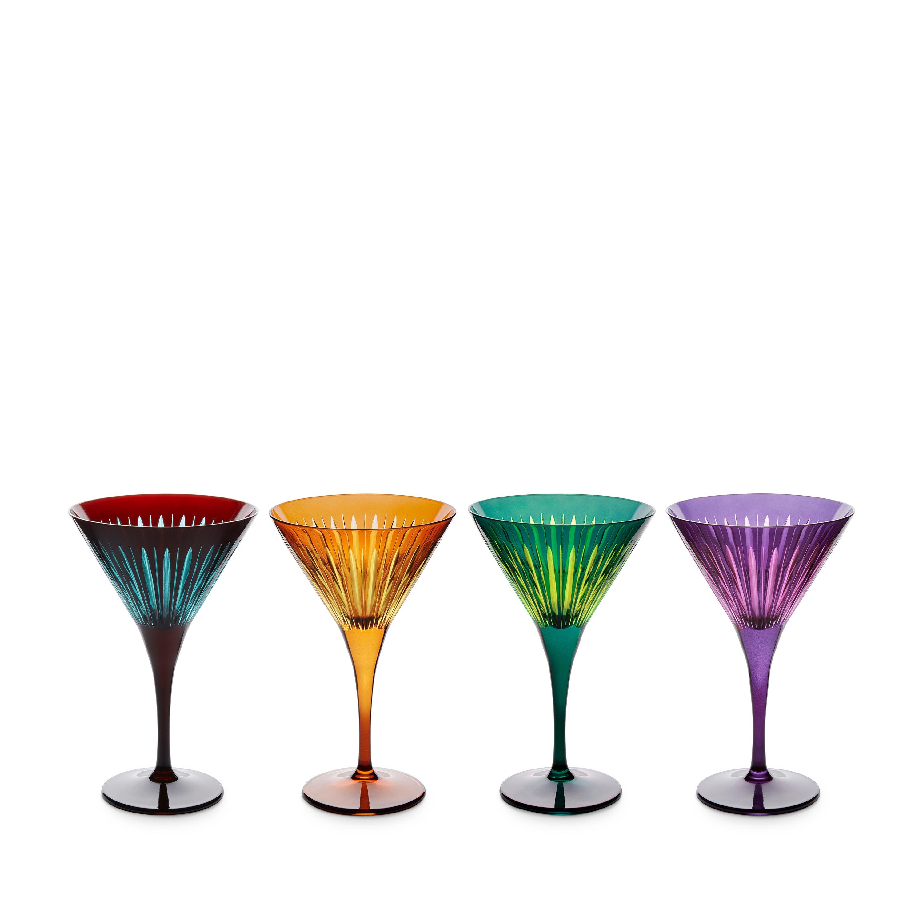The art of the bar becomes a celebration of color and form. Jewel-toned glass, cut by hand and sculpted into bold silhouettes, transforms every pour into a gesture of elegance. From flutes to shakers, decanters to ice buckets, each piece is designed for those who entertain with intention.